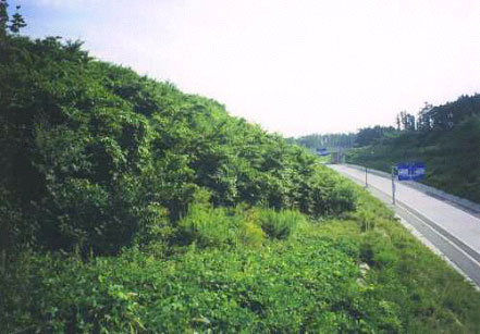 導入植物:コナラ,クヌギ,カシワ,ヤマハンノキ,ヤシャブシ,アキグミ,ヤマハギ,コマツナギ,メドハギ,ススキ,OG,IRG